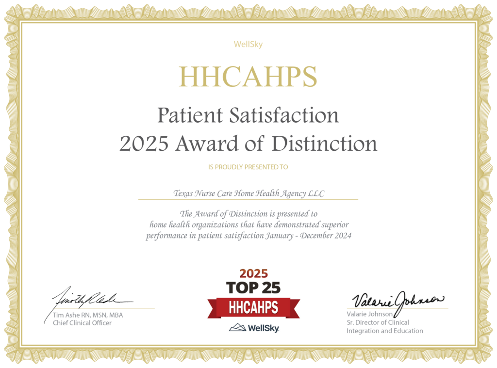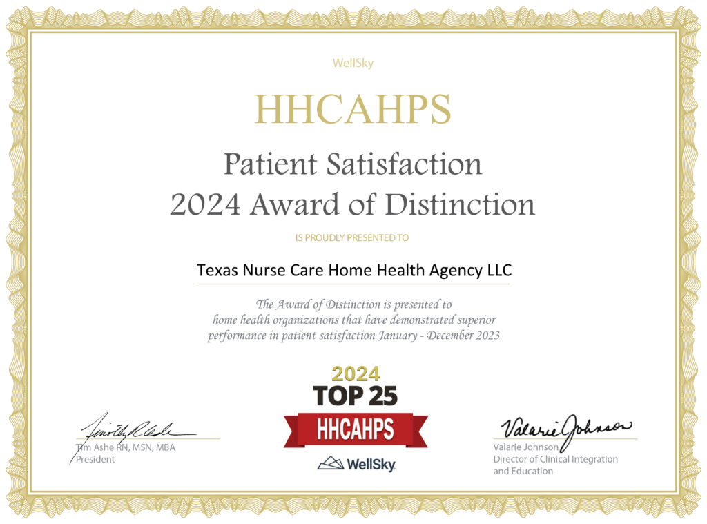 Recognized among the Top 25 home health agencies for superior performance in patient satisfaction, based on 2024 HCAHPS survey results.